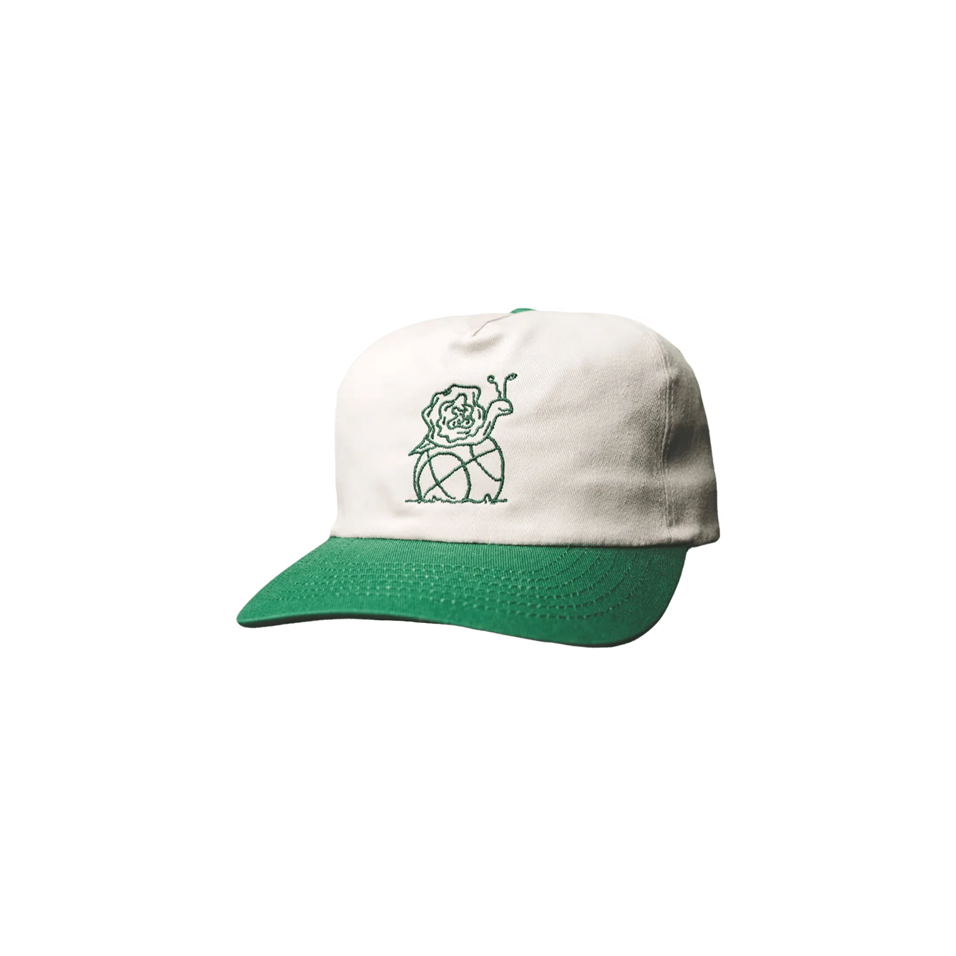 Long afternoons under the fruit trees. A chilled garden wine in hand. The gentle clack of bocce balls. This cream and green cap captures the slow, stylish sport of summer, where leisure is the real winner. A stitched snail coasting on a bocce ball seals the vibe. This classic two-tone snapback is perfect for any lazy game in the garden. This vintage-inspired cap only gets better with age.